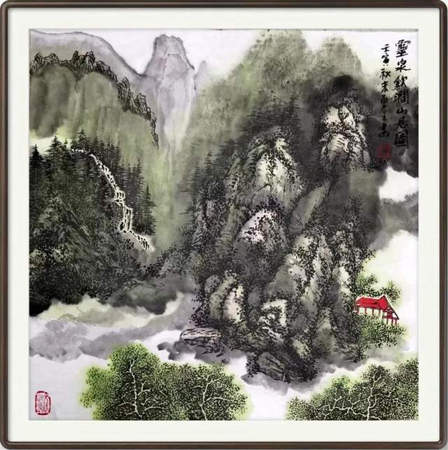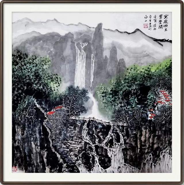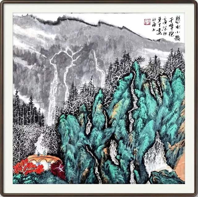《悬水小桥千峰抱》50×50cm