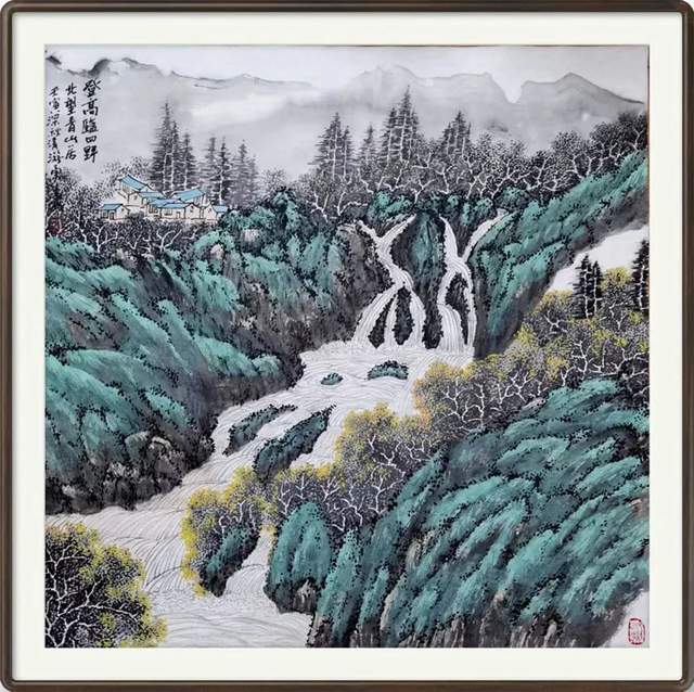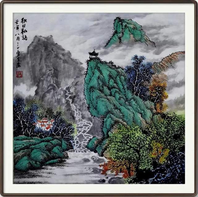 《翠岭秋瀑落清音》70×70cm
