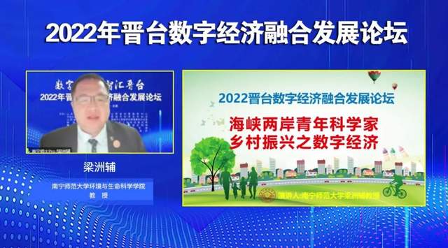 南宁师范大学环境与生命科学学院教授梁洲辅作主题为《海峡两岸青年科学家乡村振兴之数字经济》的报告,围绕乡村振兴数字经济发展战略,从什么是乡村振兴、乡村振兴怎么走,乡村振兴基本原则,数字经济基本原则,提升农业发展等方面进行了阐述。他希望海峡两岸青年科学家能到“乡村振兴”的大舞台施展才能,加快推进农业农村现代化数据化,实现抱负,为国家做贡献。