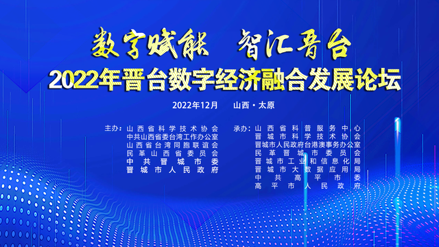 2022年12月14日,2022年晋台数字经济融合发展论坛以线上形式举办,论坛聚焦晋台两地大数据智能化产业集群,围绕典型应用场景、产业链创新发展等方面开展广泛交流,在线21万余观众观看论坛线上直播。本次论坛以“数字赋能 智汇晋台”为主题,紧紧围绕深化晋台经济融合,打造山西省数字经济发展新优势,全方位促进数字经济与实体经济融合发展,助力山西高质量发展。