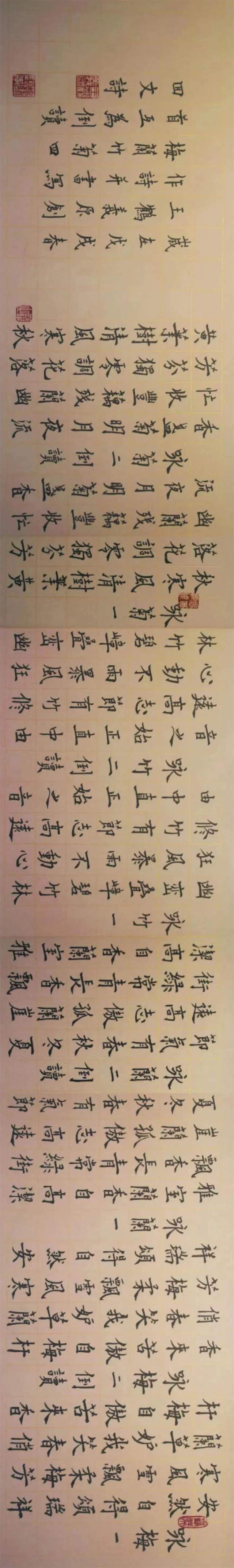 王鹤义老师原创:梅,兰,竹,菊四首互为倒读的诗。中国历史上还没有一个人同时把梅,兰,竹,菊写成互为倒读的回文诗并把它写成楷书作品。