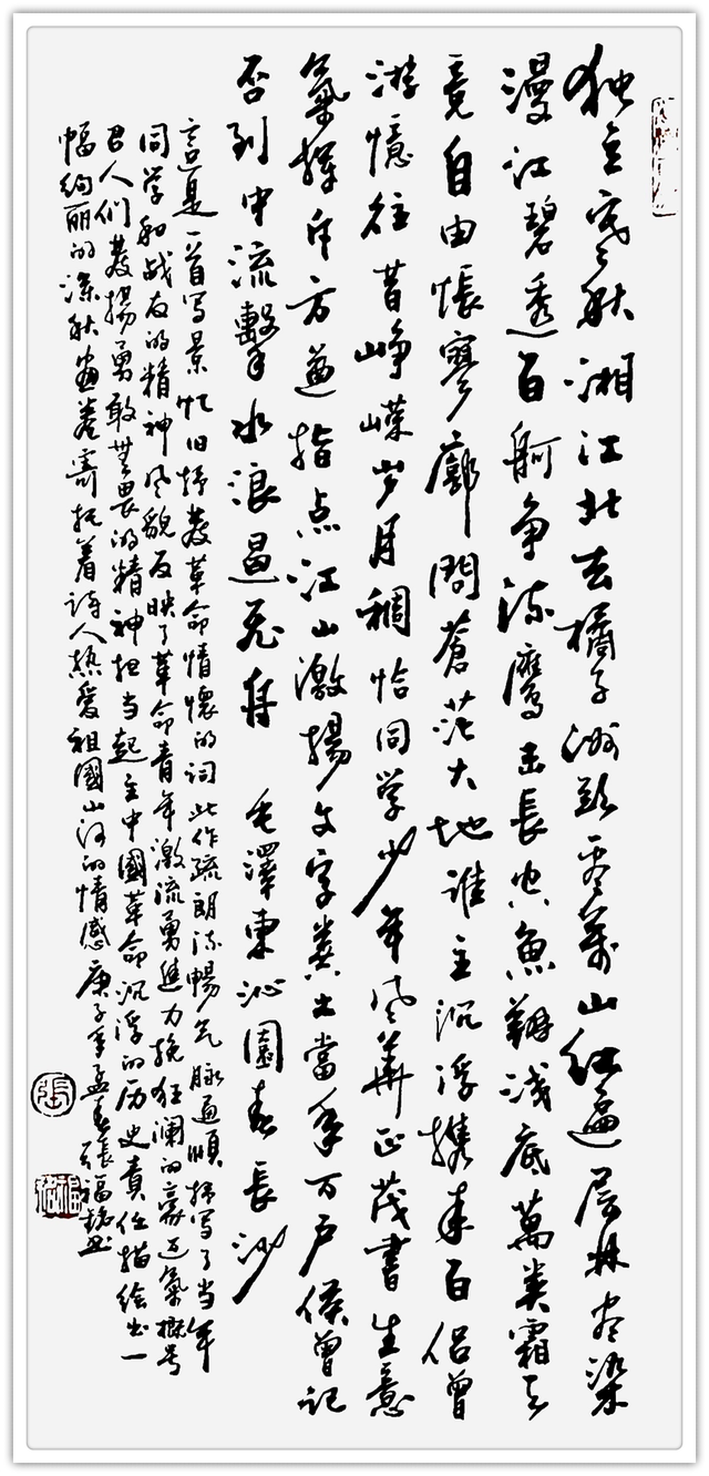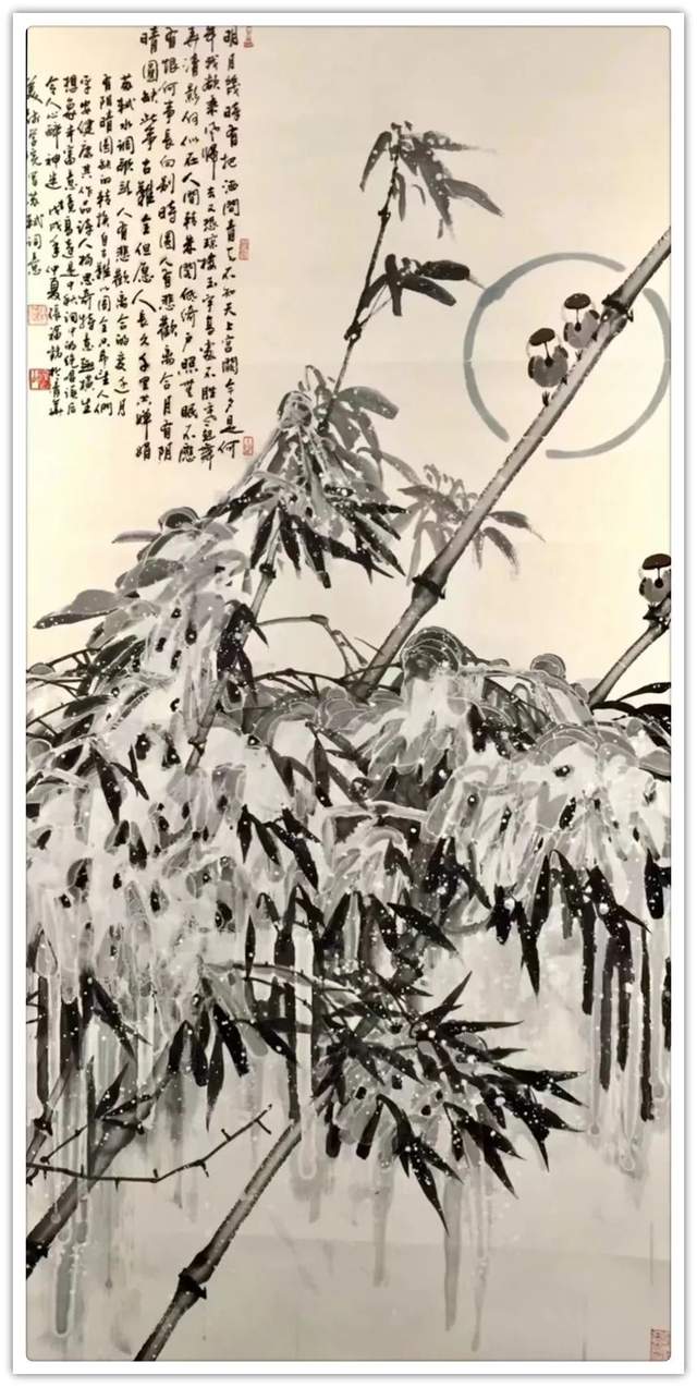 书画同理,两者之间颇有相妙之处,翰墨欲极熟,可融丹青法。张老以此作翰书,其行书下笔,深得丹青之妙法,笔饱墨涨,血肉浑成,任其洇化,笔线由浓到枯,由淡到渴,变化无穷,宛如神助,其墨亦是如此,时而浓墨重力,时而淡雅清新,时而异峰突起,时而若隐若现,观其行书,好似高山流水,奔转于幽林深壑之间,又似引吭高歌,飞落于万丈深渊,书画双纳,高古亦然,笔精墨妙,造诣书巅!