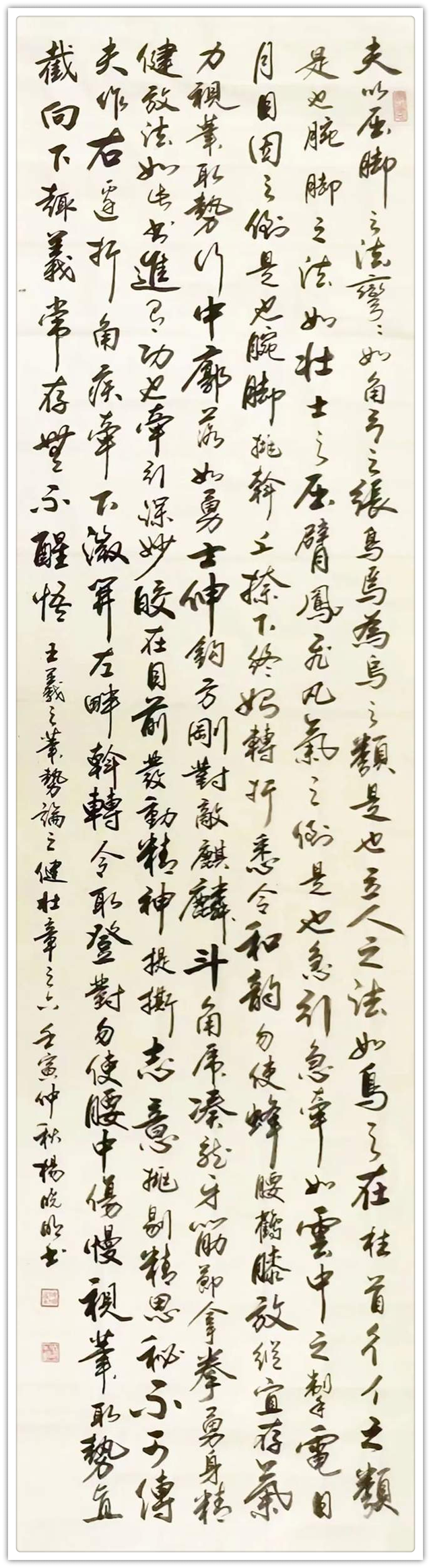书风儒雅,画品自然。如果说承古继今和弘扬文化是杨晓明先生的艺术观,那么师心重道和澄怀的品性便就可以说是今日杨晓明先生的书画创作观!在取法上趋于博大,在文脉上崇尚典雅,书以载道,画以载韵,再加上杨晓明先生自身所具备的深厚文人修养,如此其众幅书画作品能成为当下艺界内的上乘之作,也就是自然而然的事情了,艺术价值,可谓非凡!