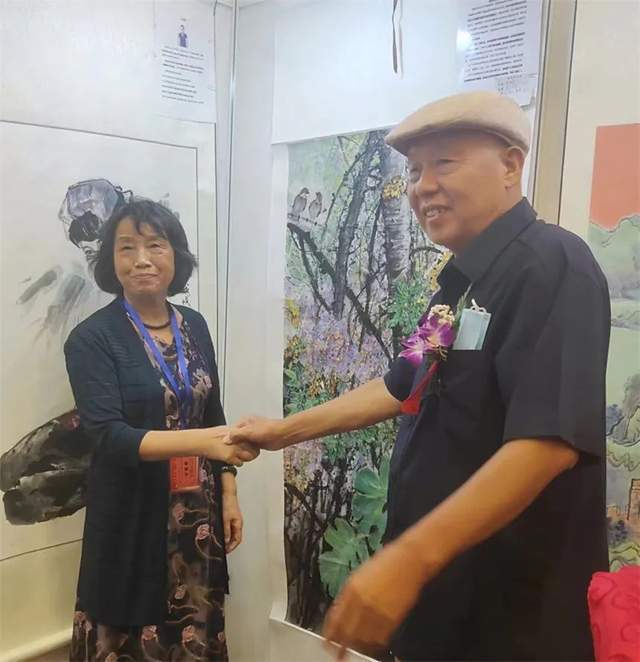 中央国家机关美术家协会主席王阔海给画家易新华颁奖并交流