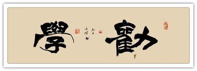 从容不迫的笔墨风尚,在冯丽女士的众幅篆隶作品中是最为主要的书写状态。其隶书横幅劝学二字,是有厚重笔法之显,而整体字势也亦是丝毫不失于古典隶法的扁平之道,蚕头燕尾可见余韵,是谓求其章法而又见其局势,古雅胸襟,颇具正大!而篆书作品则不同于其隶书表现,一幅篆书所作,笔迹是有圆润之舒张,结体内外时而横平竖直,时而婉转有致,左右不失对称,上下不偏不倚,如此化方为圆之道,恰是当下篆法之典范也!