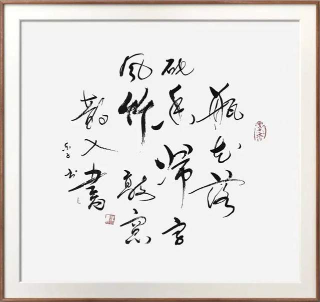 笔墨总是会随着字势和字体的不同而随之变化,冯丽女士于其众幅书法作品中的笔墨表现也是如此,而作为观赏者,我们也同样是可以从其笔墨的风格嬗变中感受到她那丰富的文人性情和心迹呈现。首观其行草书法,书中气象可谓是大气盎然,用笔用墨直追纵意而为,所成字势,时而犹如龙蛇之竞走,时而又如苍木之老健,于此纵览,真可谓是风樯阵马撼人心神也!