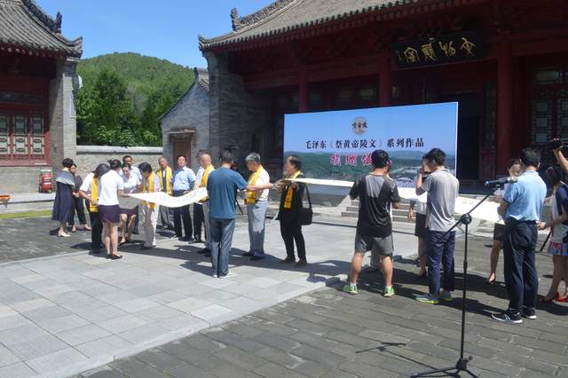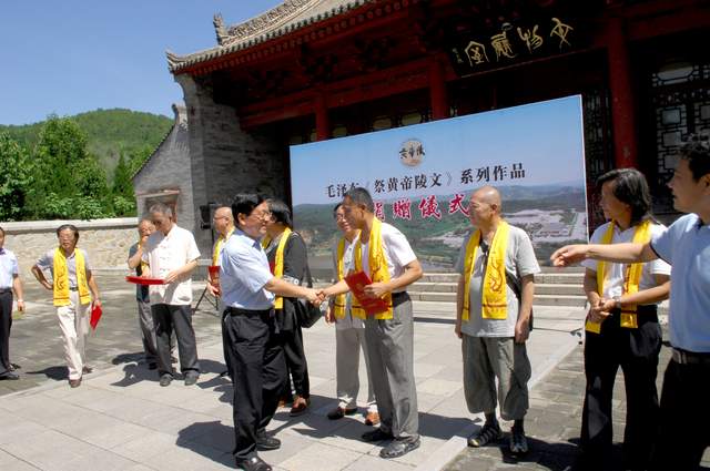 2022年9月9日,由国家一级美术师刘泮书及津门著名书法篆刻家卢世宏、李卫中、萧长发、汪云汇、李子健、张金忠、郑继峰、高少云合作创作的毛泽东《祭黄帝陵》系列作品捐赠仪式在黄帝陵西院举行。 黄帝陵管理局局长张会明代表黄帝陵管理局接受捐赠,并向参与创作的书画家颁发了收藏证书。