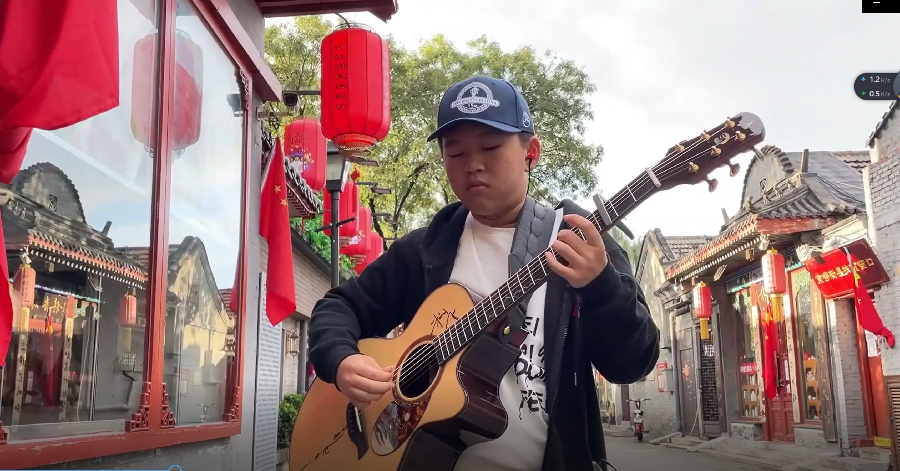 本视频为黄乐寅在北京参加比赛时,赶往北京胡同著名的南锣鼓巷,弹奏吉他名曲《北京胡同》,追逐少年音乐梦 。