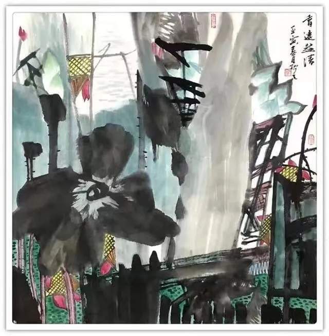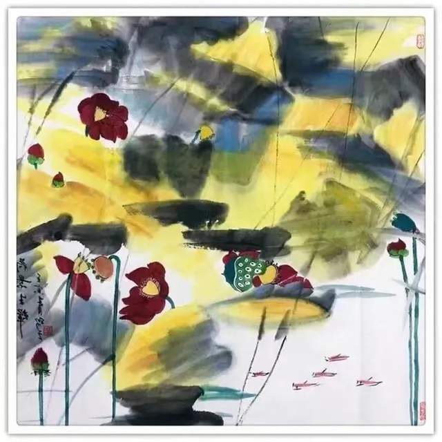 浮华看尽有荷香,浓墨重彩非寻常。淼之绘荷出新意,水墨传承有气象。