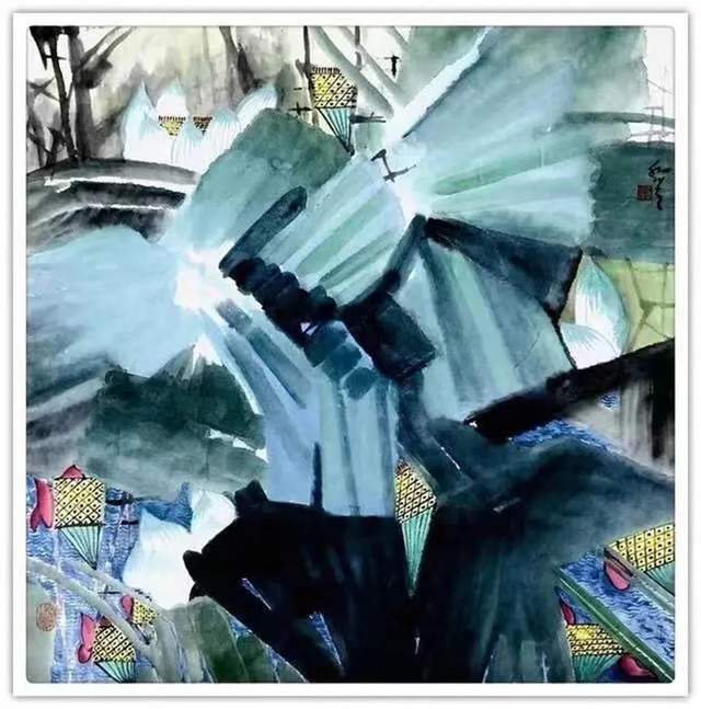 在建国先生的理解中,荷花只是一种表达形式,其实人的内心堪比宇宙包罗万象。所以,他一方面强调空间的营造,另一方面又保持传统国画的特质去力求变革,注重笔法和用色,注重笔墨革新,围绕探索水墨精神与现代性的关系,他以一种哲学的思考,来还原艺术的本源,同时。又以一种开放的现代视角,为花鸟画注入了自己新鲜的表现,展现出一种厚重烂漫的视觉感受和出尘离染的精神秋声。