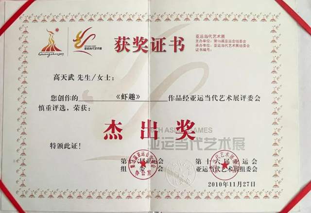 被中央电视台《藏宝栏目》授予艺术领航人物。天津市公安局授予警营艺术家称号。出版有《中国当代书画名家—高天武》画集等。