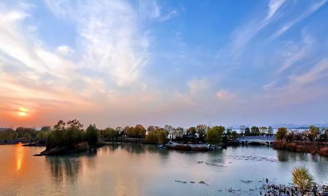 春,烟雨凝北接隋唐古镇2风,南映夕阳迟暮烈山落黛影美于湖上。泛舟北眺相山天横古城郭、捧杯怡眄乾隆石板街南小憩处,慷慨历史长河似惊鸿一飞转瞬逝于身边风。