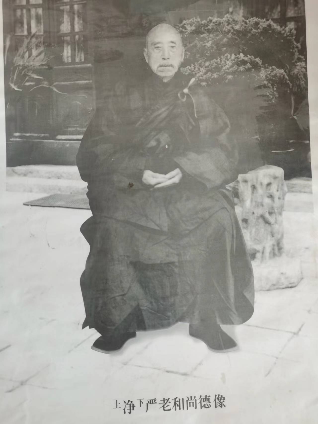 1991年,是净严法师百龄初度之期,中国佛教协会会长赵朴初,在是年初春,为他亲书一幅寿联,联曰: