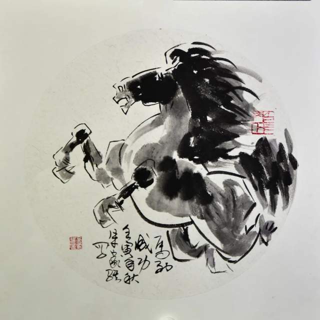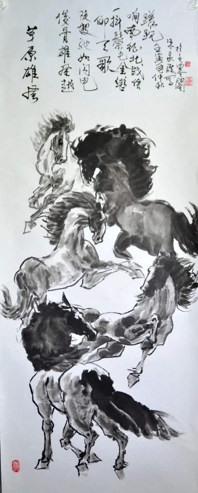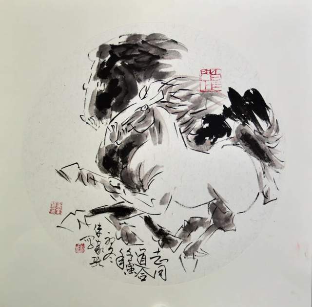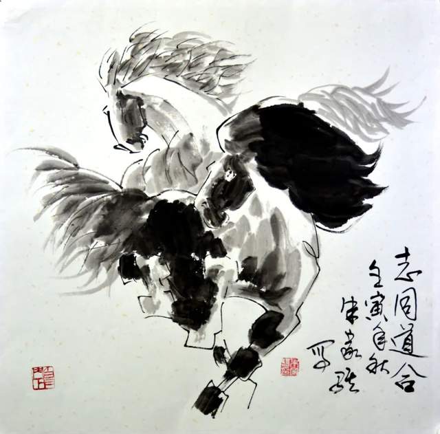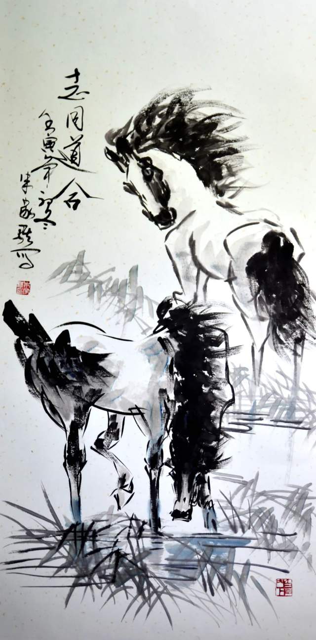 朱家骐教授通过写生,抓住马瞬息变换的各种形态,熟练地掌握技巧,下笔就胸有成竹。也可先从临摹入手,经过借鉴逐渐掌握中国国画中马的绘画技法,丰富感性认识,再以写生和创作相合,取得事半功倍的效果。