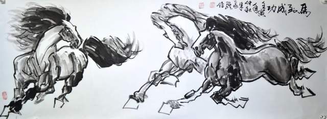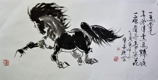 早期人类的岩洞壁画以及历史画马者,都已各尽其能,留下许多经典之作。近代徐悲鸿先生则创造水墨写意画马。“一扫万古凡马空”!大意磅礴、形神兼备。