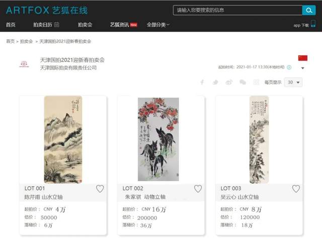 天津国拍2021迎春拍卖会朱家骐作品以36万元落槌成交