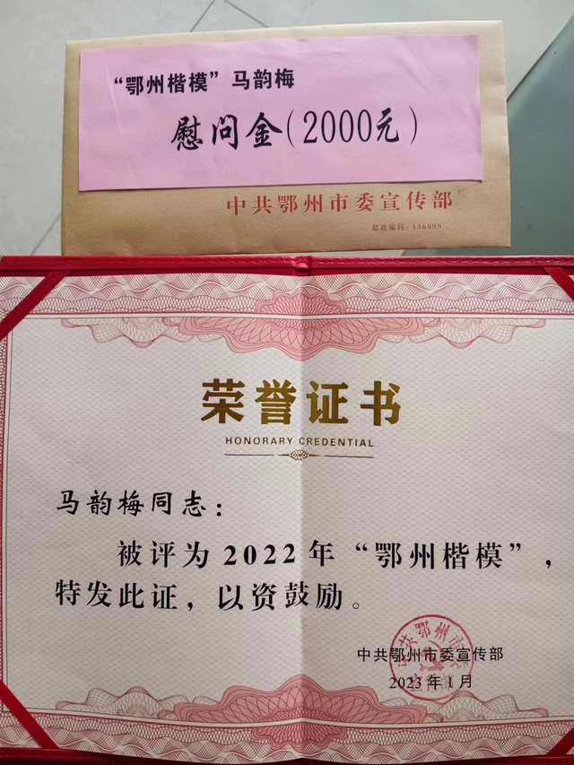 吕小军为马韵梅颁发了“鄂州楷模”的荣誉证书和2000元慰问金,并了解她的工作、家庭生活等情况,对她助人为乐、见义勇为的事迹表示高度的肯定和赞扬,勉励她再接再厉,积极发挥榜样示范作用。