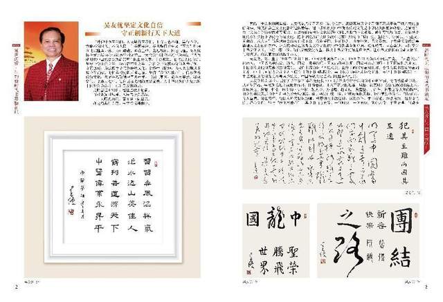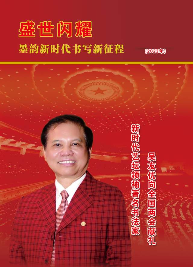吴友优坚持以人民为中心的创作导向,深入农村、学校、工厂、部队、企业,弘扬中华优秀传统文化,聚民心、育新人、兴文化、展形象,增强中华民族伟大复兴的精神力量。吴友优努力践行“一带一路〞的方略,应邀到美国、德国、马来西亚、日本等国家演讲,传播中国优秀传统文化,讲好中国故事,进行文化交流,深化文明互鉴,为增强中华文明传播力和影响力,促进世界和平做出了重大贡献。吴友优先后荣获“世界杰出华人艺术家”、“中国先进文化杰出代表”、“走向世界的书画名家”、、“人民功勋艺术家”、“世博艺术成就人物”、“中国书画兰亭杯德高望众终身成就奖”、“中国书画领袖人物”、“对外交流特殊贡献金奖”、“国家级重大贡献艺术家”丶“一带一路中国文化使者”、“时代楷模”、“东方文化形象大使”``辉煌中国七十年杰出艺术家”、"国家文艺模范人物“丶"中国文艺脊梁人物”、"建党伟业文艺奖”丶"中国文艺百花奖"丶"国家文化强国奖”、"国际文艺巅峰成就奖"丶"中华书画非遗文艺功勋奖”、“共和国文化艺术最高荣誉奖”等荣誉称号。吴友优著写了《灵感书法概论》40万字即将出版发行。吴友优说到,我坚持“我笔写我心”几十年不停步,以文铸魂,以书颂党,弘扬正气,服务文化复兴,服务新时代的伟业,服务人类进步,来自对党的无限忠诚初心不改,来自对中华文化的敬畏之心,来自中国人、中国红、中国精神的骄傲自豪和磅礴力量!