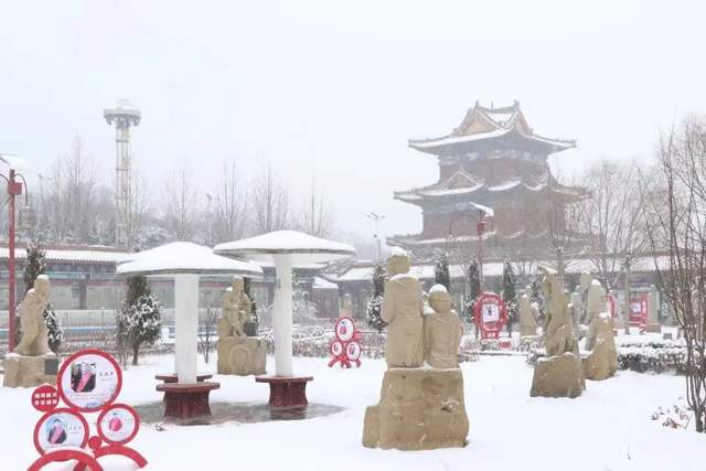 2023年的第一场雪来了,洋洋洒洒的雪花覆盖着振兴小镇。