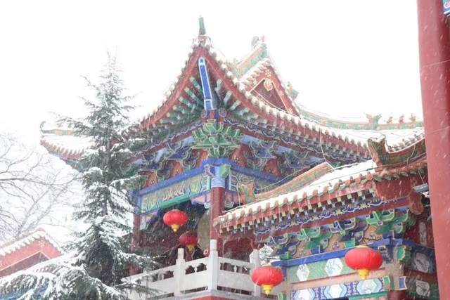洁白的雪花顺着飞檐翩翩落下