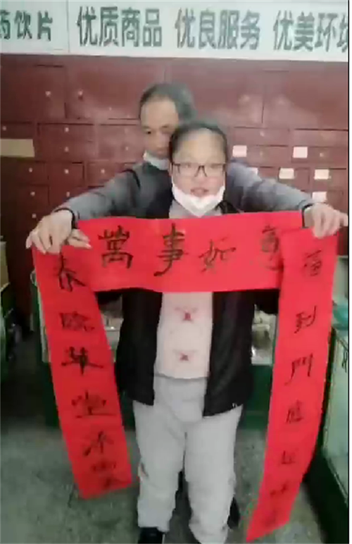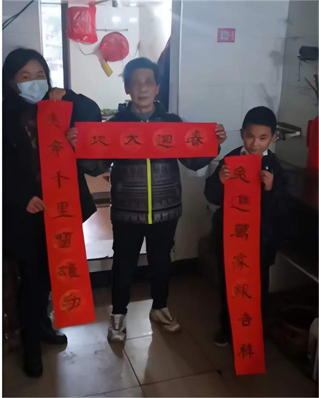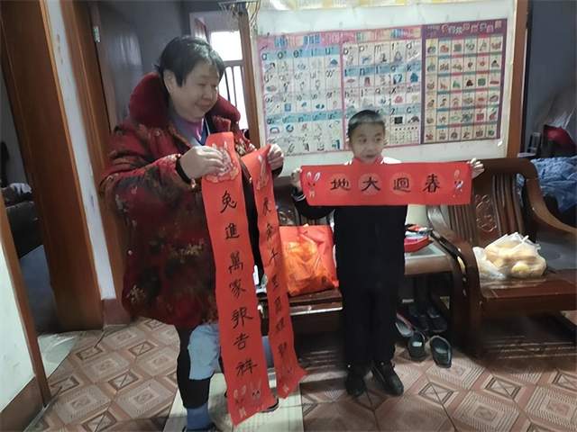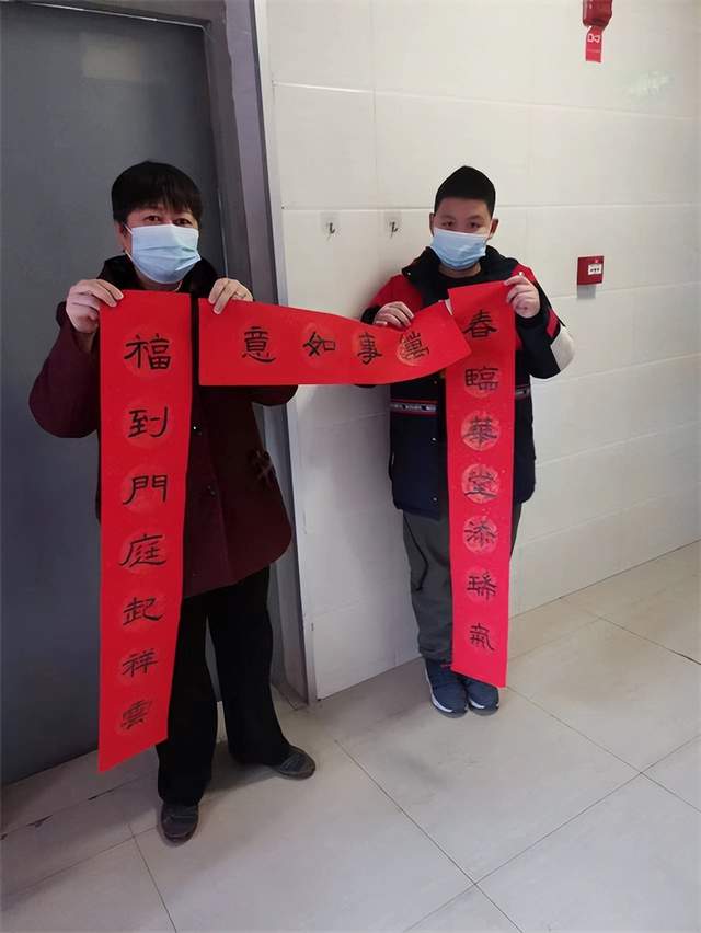 “新年图个吉利,希望全家健健康康,平平安安。”食品小区的熊婆婆高兴拿着一副春联和一张“福”字带回家,“写出来的春联闻着有墨香味,比买来的更有温度和年味。”