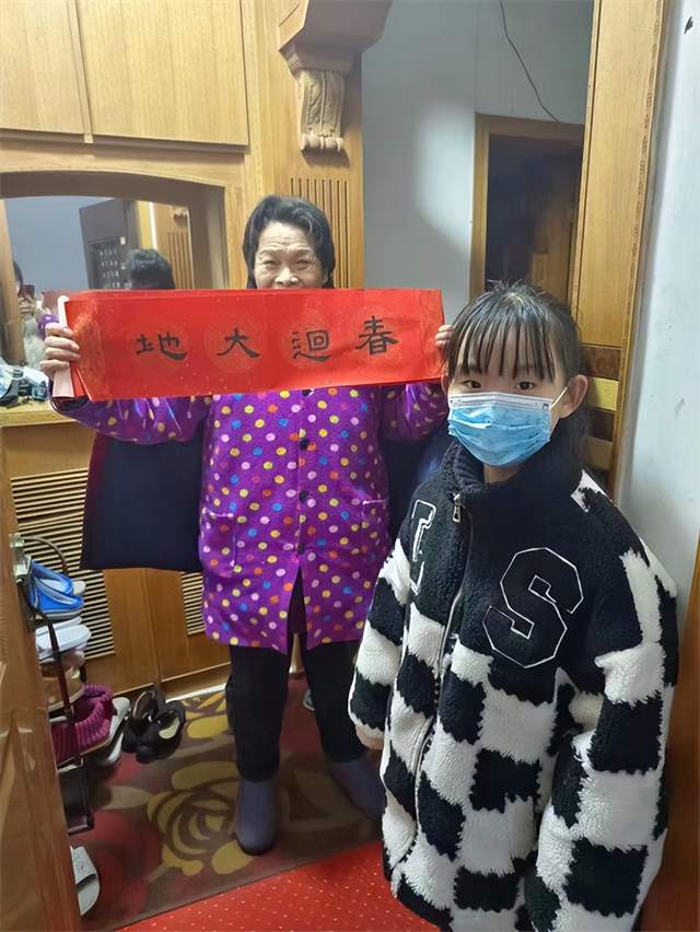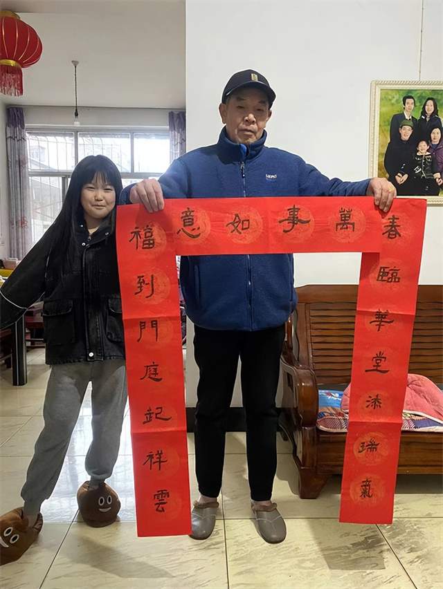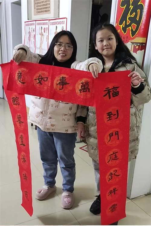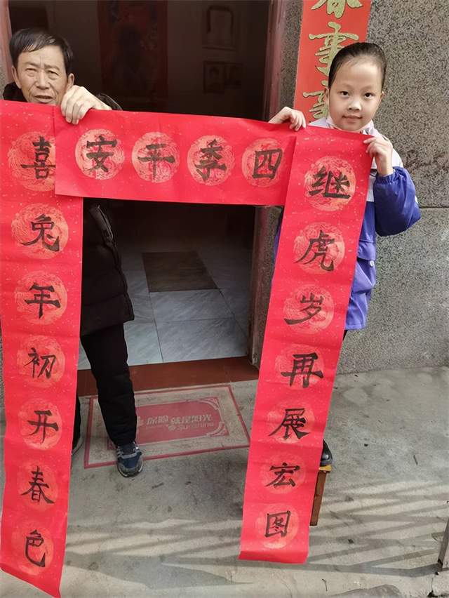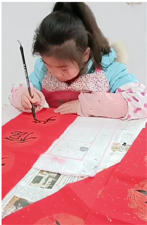 “我们把写好的春联送到了爷爷奶奶的家中,看着爷爷奶奶的笑容,我好开心。”“小小书法家”王诗文说。