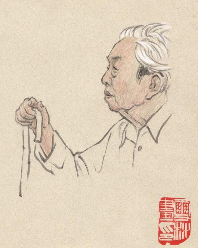 林鹏先生去世后,《人民日报》社编辑、画家罗雪村老师,画了先生的肖像和东花园旧居给我发来,令我泪目。画作右下角盖的印章为林鹏先生所刻,我一眼识得。