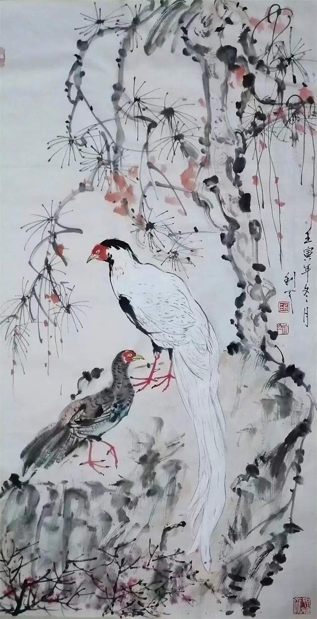 泼墨显抽象,有骨画具象,有笔有墨,干施皴,湿用染,花鸟作品的韵质显得如一天清淑气,千里碧榆风。在色不碍墨,墨不害色的巧妙照见中,把东方审美的趣味表现得淋漓尽致,观赏可悦人之目,也可动人之心。花鸟作品可陶冶情操修身养性的动能扑面而出,果然是真正的美术佳品。诸如这样的花鸟作品挂于雅室草堂,必然是蓬荜生辉,雅致纷纷。一幅画满盈书气息,带有文化品位,尽有芬芳能除秽,更因儒雅益东轩,绝然是好画!