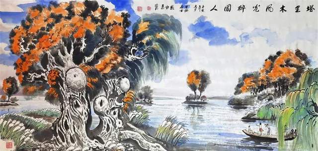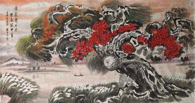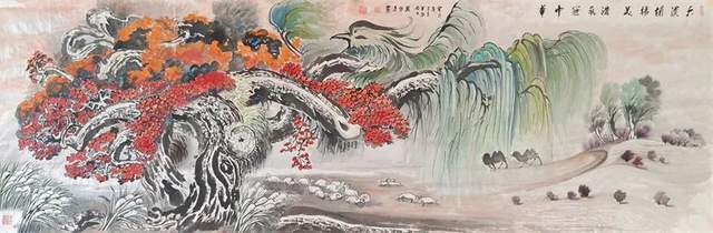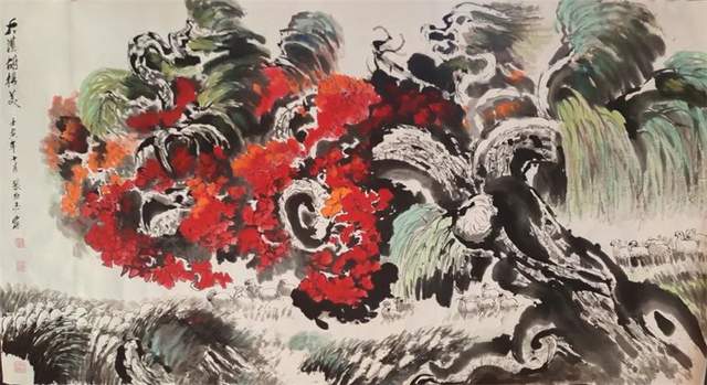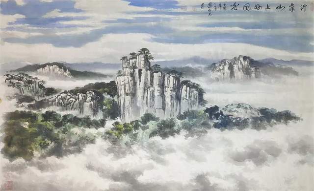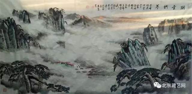先生画山水,外师造化中得心源!有应物象形的笔墨功夫,有随类赋采的渲染气韵。骨法用笔的特征相当鲜明,可以塑造青绿山水显儒雅,也可以画金碧山水寓宏运。通过色不碍墨,墨不碍色的铺陈,把山水画的雅俗共赏,最宜品味,有很强的可读性。挂在厅堂,有极强的艺术饰美效果,东崖复沓蔽轻雾,西峰峥嵘喷流泉,三山之巅,蓬荜生辉!
