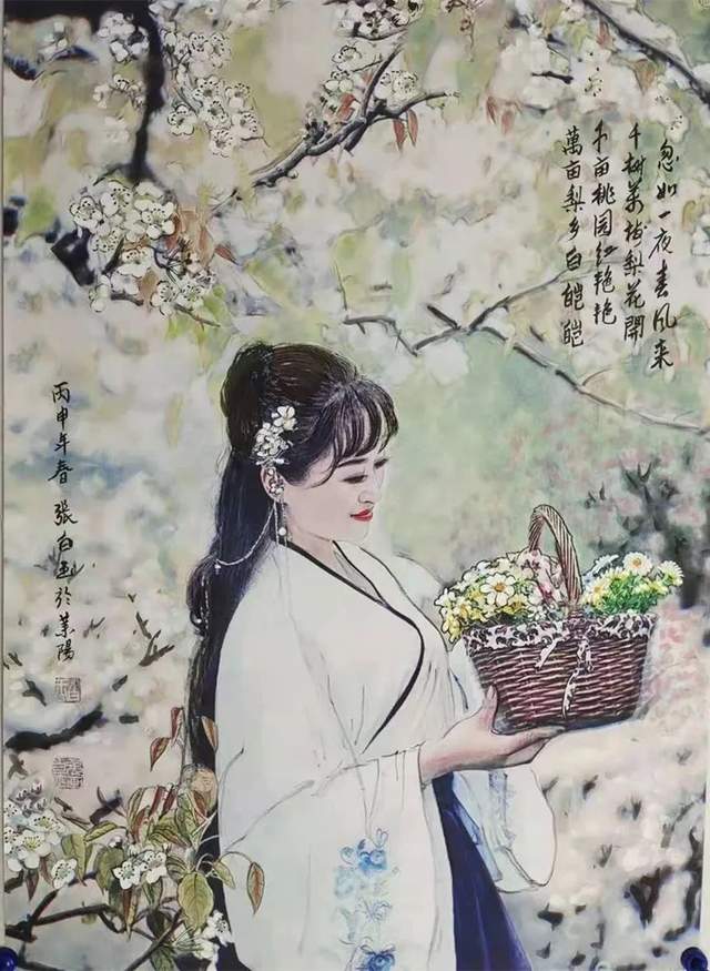 张白玉先生的人物作品,上作庙堂大鼎之功,领袖作品画得正大气象。亦画文化人物、时尚人物。画孔子极是圣师风范,钟馗则画得生动多趣,美人常作娇俊典雅!线描功夫精湛入微,兰叶描飞逸,铁线描精神,游丝描高古,笔笔相生,笔笔相应,把中国画依线造型的功夫表现得无以复加!时代画圣之格局,亦由先生的精湛笔法得以构建!他的画不但有卓越的传承功力,亦有笔墨当随时代的精彩创新,师古法而不固于陈旧,修丹青传文化,恰是当代之圣贤!他画画,最有借古开今的新思维、新实践、新功勋!