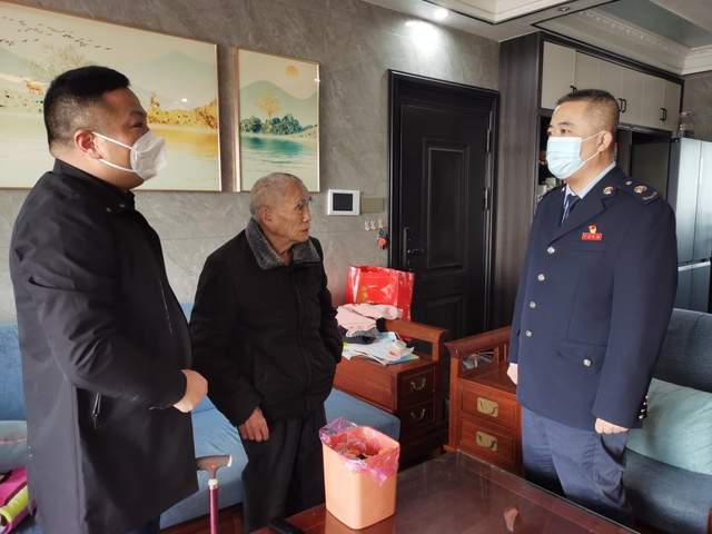 签约仪式结束后,共建单位一行前往万科悦城和中南漫悦城小区走访关爱退役军人家属、高龄老年人等5个特殊群体,仔细了解他们的身体状况和生活情况,嘱咐他们要注意防寒保暖,做好个人健康防护,并送去慰问物资,让居民小区群众都过上一个欢乐、祥和、喜庆的春节。