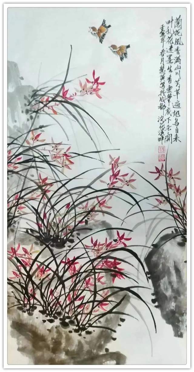 蒋慧英女士画画,画得这么臻美,如此干净,究其原因是与“专业”大有关系的。国画之法经过数千年的传承沉淀,形成了严谨的法度体系,必须像蒋慧英女士这样把传统画法作出精研覃思,才可以执笔作线条,让勾勒无有一笔糜软无力,无有一根线条成为散兵游勇!笔法精湛,善作骨风,比如画成的《孤芳不肯竞春艳》这件兰花作品,真可谓是骨法用笔,应物象形的典范!把兰花塑造的刚柔相济,清芬解秽,非常有精气神。在雅舍挂这样的一件作品,必定盈满文化气象,是谓雅俗共赏的上上品!
