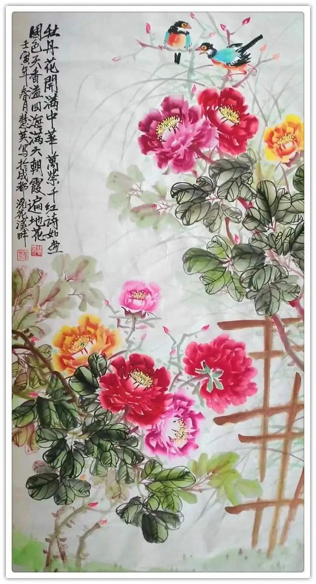 纤尘不染绘丹青,万类之像显形神。她把牡丹的自然属性与文化内涵完美地统一在一起,看是一幅丹青美图,觉是吉祥富贵意,达成了雅俗共赏,可以装饰万家屏障的艺术魅力。所以她的作品参加展出是金奖之尊,收藏则为琼花玉蕊,是为当代美术的惊艳佳作,可以承载丹青文化春秋相传!
