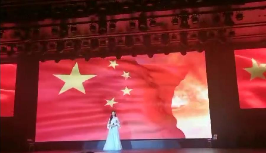侨都文苑和台山精武会文化中心的形象大使许斯慧小姐演唱一曲《五星红旗》