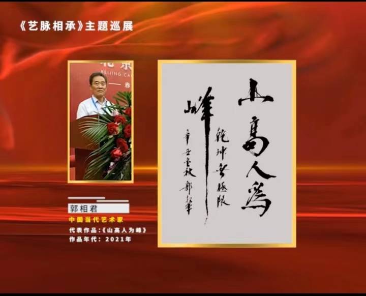 郭相君又(郭相军。)男。网名郭君。籍贯安徽,现住江苏省苏州市,1988年毕业于安徽大学中文系,长期在文化,教育,宣传战线任职。现为中国书法协会会员,中国书法促进会员,九洲枫林国际书画艺术研究院理事,河南省收藏家协会会员,京九晚报老年记者团成员。中国诗书画家网高级书画家,文化使者,人民艺术家。自幼酷爱书画,几十年不懈师古,探究创新,曾深得孙晓云,张旭光,张继等著名书法名家的言传书授,独具形成自己的书法风格,并多次被国家级权威媒体报道。作品多次在国内外举办的书画大赛中获金奖。