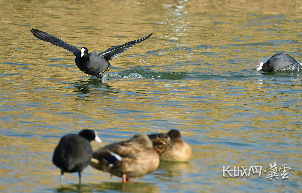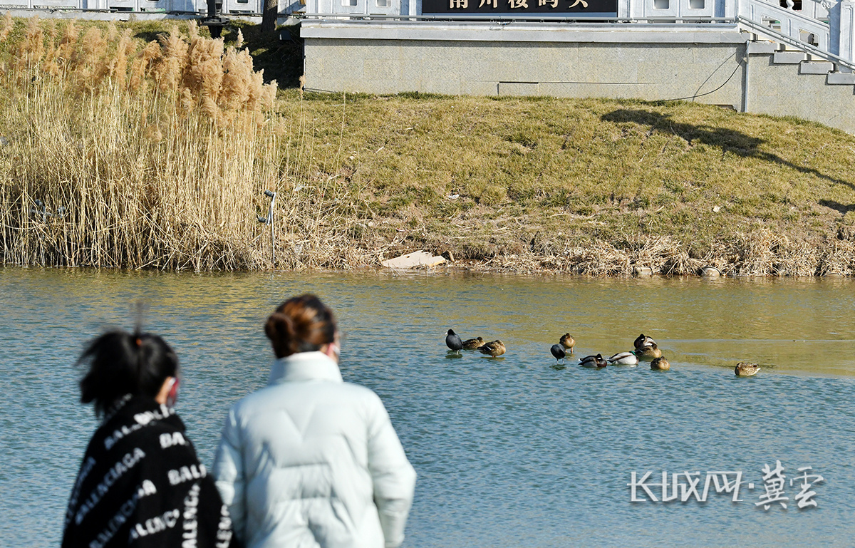 近日,在京杭大运河沧州中心城区段南川楼码头水域,绿头鸭、白骨顶鸡、小鸊鷉等水鸟在此逗留、觅食、嬉戏,市民纷纷驻足欣赏这冬日鸟趣。