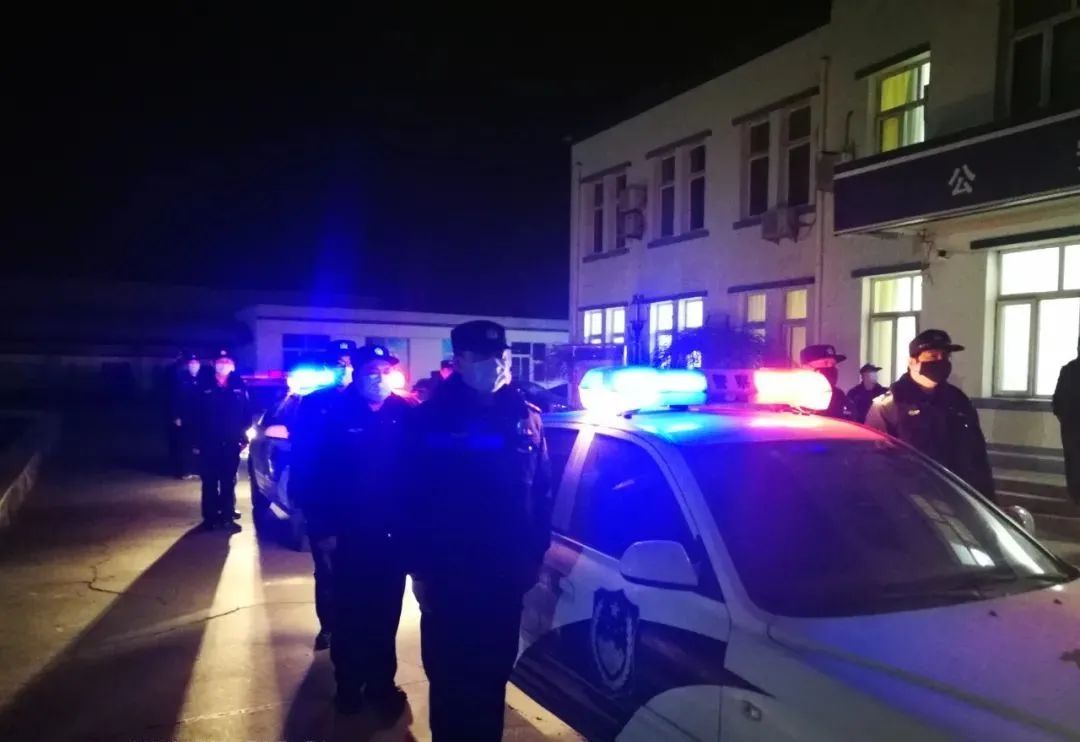 警察夜间出警巡逻。