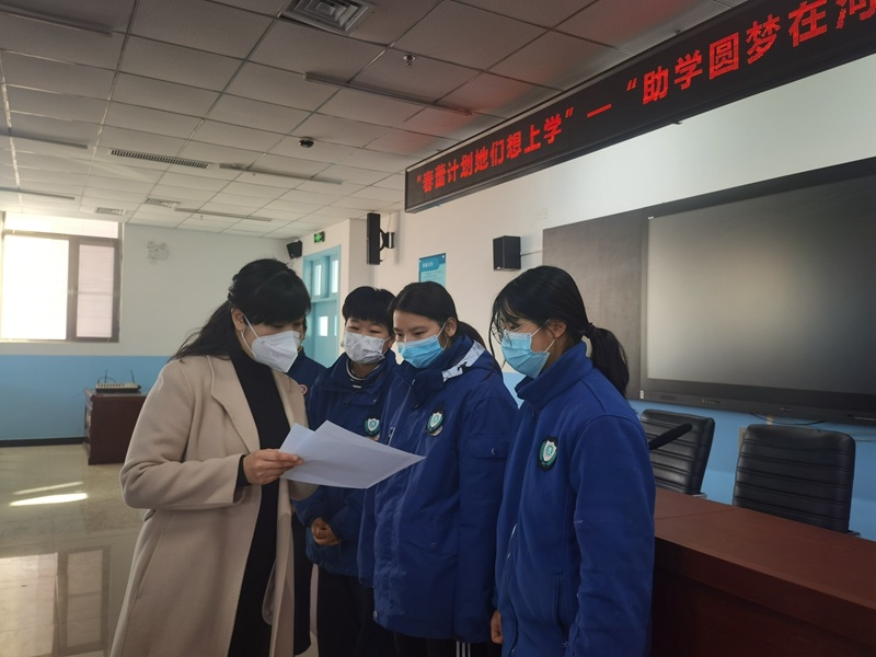 满城区妇联相关负责人向受助学生介绍春蕾计划。肖一南 摄