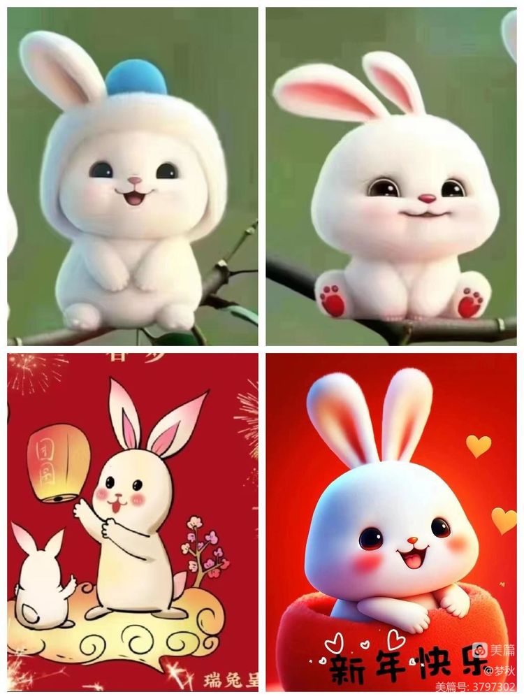 大年初三玉兔欢,活蹦乱跳乐翻天。