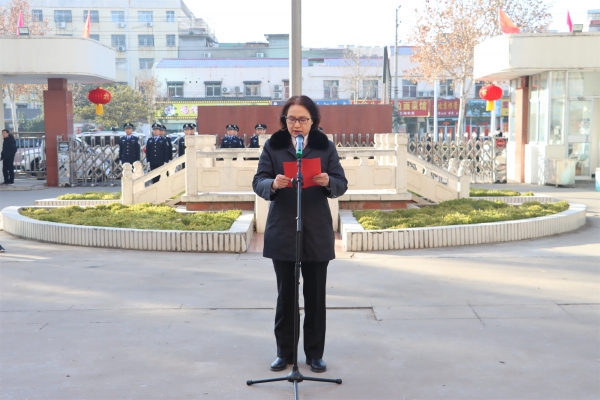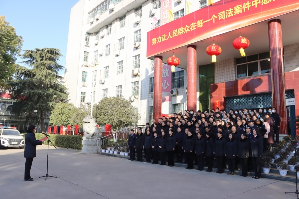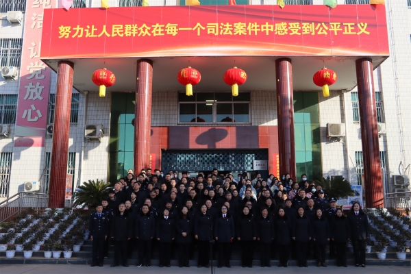 五星红旗下,党组书记、院长赵曙君向全体干警致以新春的问候,对干警们在过去一年里的辛勤付出表示充分肯定,鼓励全体干警新年要树新形象,新年要创新业绩,新年要呈新亮点。并号召全体干警以崭新的精神面貌、高昂的工作热情、良好的司法形象、严谨的审判作风,开好头、起好步,努力确保新年新跨越。