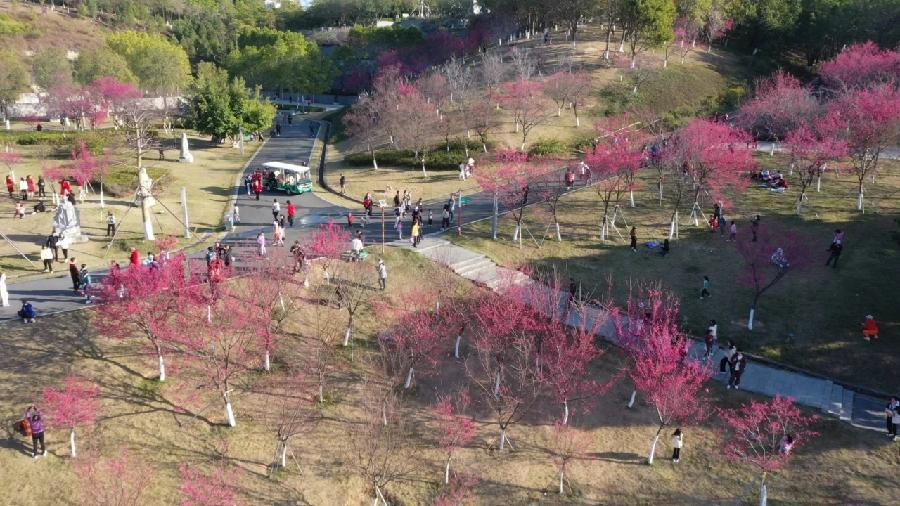 据了解,客家文化公园樱花种植面积大约有2万平方米,盛花期将会持续到三月份。未来,我市园林部门还将计划引进、驯化外来新优的园林观花以及彩叶植物,进一步打造客家文化公园四季花海景观。