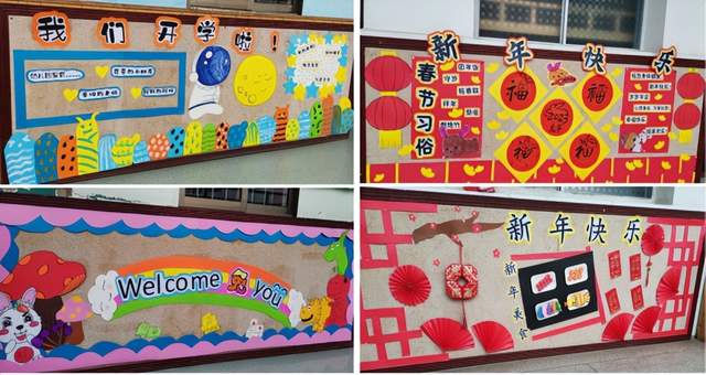 经过短短两天的时间,教室的环创及主题墙已经完成。各班环境布置根据各班幼儿年龄特点,设计不同风格、凸显不同特色。主题墙围绕“快乐的新年”“我们开学了”为主题,注重幼儿的主动参与,符合幼儿的年龄特点,高度适中,呈现方式多样,互动性强。下面让我们一起去欣赏吧!
