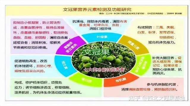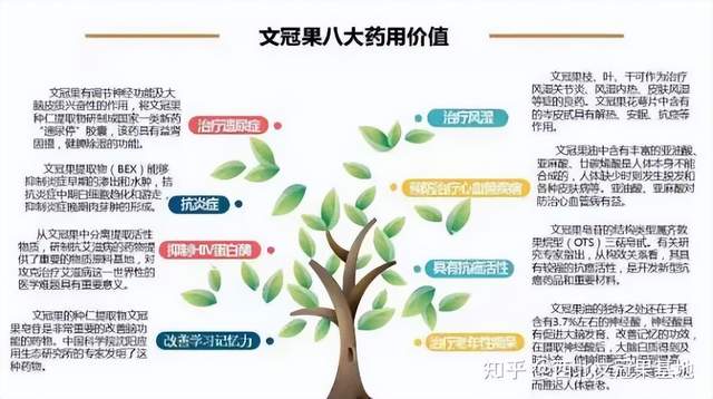 《本草纲目》记载:长寿果称文冠树,又谓文光果、天倦果:性甘、平、无毒,涸黄水兴血栓,肉(种仁)味如栗,益气润五脏,安神养血生肌,久服保健,百年不老,树枝煎熬膏药,祛风湿。强筋骨。--《本草纲目》果部无药果项下 。