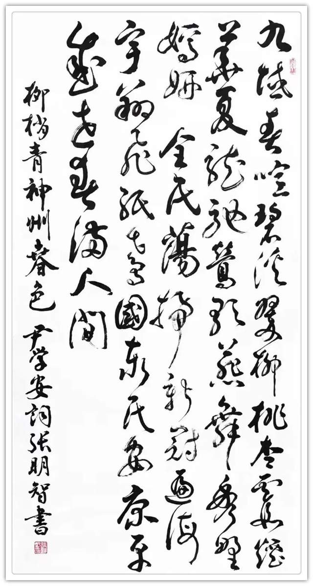 张明智,笔名尚山。1944年生。山东安丘人。先后毕业于青岛冶金建筑学校、西北师范学院。2003至2005年参加中国书协书法培训中心研修班学习。现为中国书法家协会会员,山东省书法家协会会员,中国书画家联谊会新文艺群体书画家工作委员会委员,中国教育电视台《水墨丹青栏目组》《名家讲堂》签约艺术家,国家高级书法师,北京当代环球书画院艺术顾问。