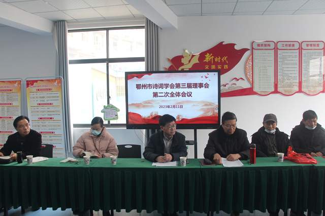 2023年2月11日,鄂州市诗词学会在鄂城区古楼街道镜园社区召开第三届理事会第二次会议。