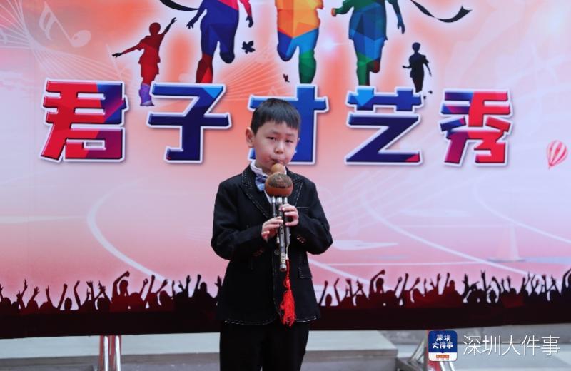 一年级五班的肖逸表演的节目是葫芦丝独奏《龙的传人》和《打水姑娘》。表演开始后,悠扬的乐声响彻学校一楼的大厅,葫芦丝具有穿透力的音色吸引了来来往往的学生驻足观看。据班主任介绍,肖逸学习葫芦丝已有两年左右的时间,如今已经作为一个爱好融进了他的生活之中,陪伴着他学习与成长。