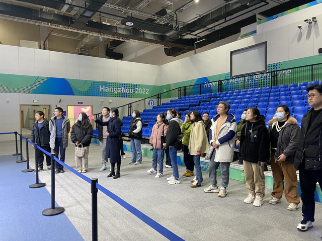 在义蓬街道团工委“窗口写青春”项目开启“精彩亚运、志愿有我”首场主题活动现场,义蓬街道组织各村社团员青年先后参观了钱塘亚运轮滑馆、亚组委杭州亚运会智能展示中心、国博中心壁球馆和亚运村未来社区等地,为下一步义蓬街道团员青年能更多地参与亚运场馆志愿服务“跨境”合作探路。