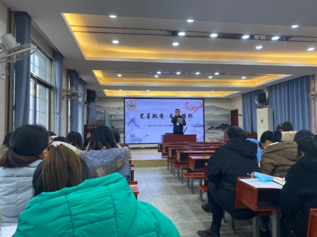 最后该校书法老师李俊作了《浅谈书法的起步教学》讲座。李校长从训练有素、层次清楚、落实到位等几方面高度评价了两位老师的书法教学,特别是手把手的引导学生上板演练,开展自评、互评,师生共评等方式,使学生发现自己的书写不足,从而改正缺点,达到书写提升之目的。李校长的精彩点评,并给出了宝贵的建设性指导,给师生书写指明了方向。