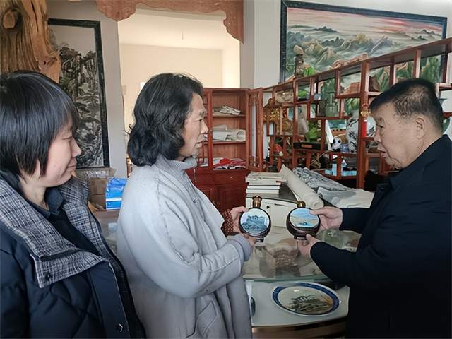 在三绘堂艺术中心总部,邓关心和收藏家相互切磋交流心得,取长补短,互勉互励,以书画会友,书画室里充满了喜悦、祥和、浓厚的文化氛围。
