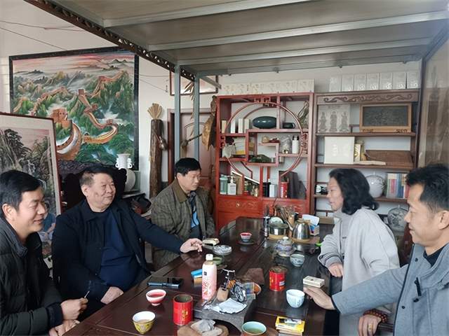 不忘初心跟党走,翰墨丹青铸辉煌。2023年2月18日至23日,北京收藏家曹万凯、敦煌旭辰实业有限公司董事长庄水平、中央电视台影响力时代栏目中南节目中心导演孙福民一行来鄂州市莲花山风景区的中国画《大江之觞》448米创作基地、三绘堂艺术中心总部,拜访三绘堂创始人、知名画家邓关心,并进行参观考察,并进行书画艺术创作交流,在欣赏作品的同时,领略中华笔墨文化的精粹,为书画艺术搭建起的一座桥梁。